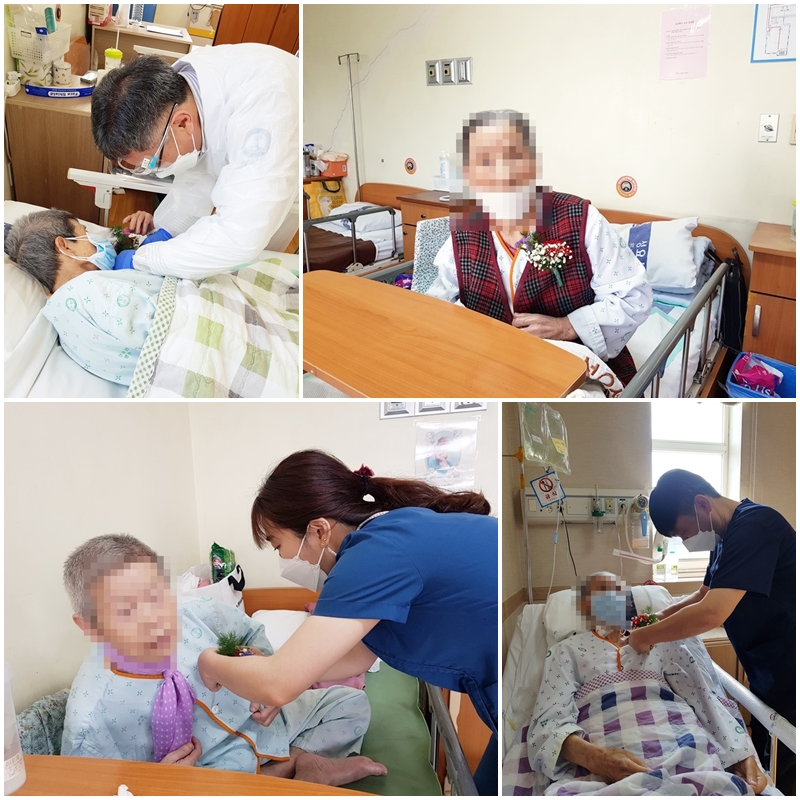 오전 8시부터 진행된 어버이날 행사는 의료진 및 원내 직원들이 환자 한분 한분께 카네이션을 달아드렸습니다.
